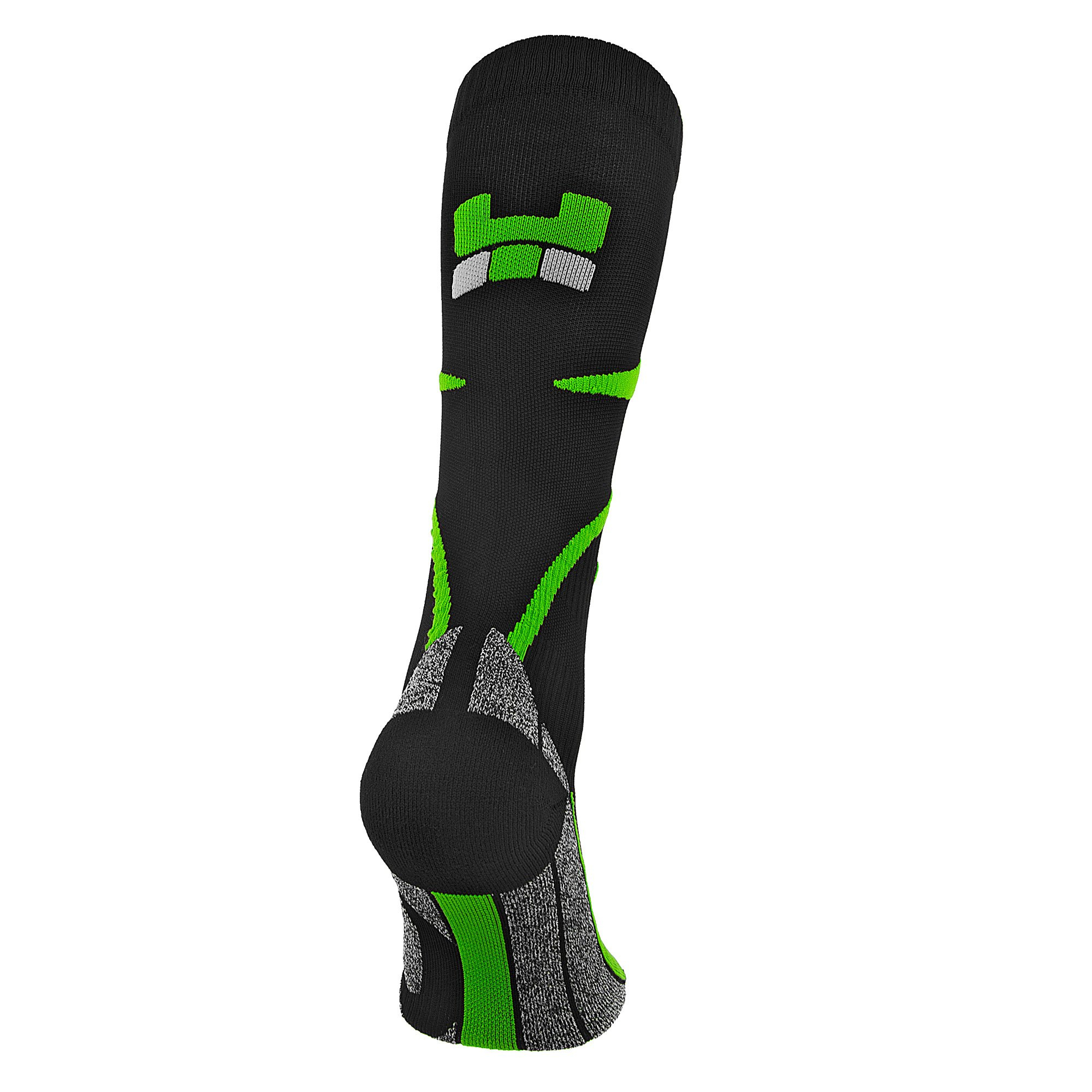 Podkolanówki na rower Oxyburn BIKE MTB to zaawansowany technologicznie produkt, wykonany z materiałów najwyższej jakości. Posiadają techniczną strukturę, zgodną z anatomiczną budową nóg, która zapewnia idealne dopasowanie oraz jeszcze lepsze wsparcie. Anatomiczne poduszki ochronne podeszwy stopy, które odpowiadają za ochronę przed otarciami i tłumienie wstrząsów, a gęsta, wyjątkowo zwarta konstrukcja z tyłu, nad piętą odpowiada za ochronę ścięgna Achillesa. Elastyczna tkanina w skarpetach kompresyjnych MTB Oxyburn tworzy "egzoszkielet" do podtrzymywania masy mięśniowej oraz do polepszenia właściwości oddychających. Dodatkowo wstawki z oddychającej siateczki zapewniają idealny mikroklimat, przez odprowadzenie nadmiaru wilgoci i ciepłą na zewnątrz. Właściwości antybakteryjne zapewniają natomiast wysoki poziom higieny, nawet przy bardzo intensywnym treningu.
