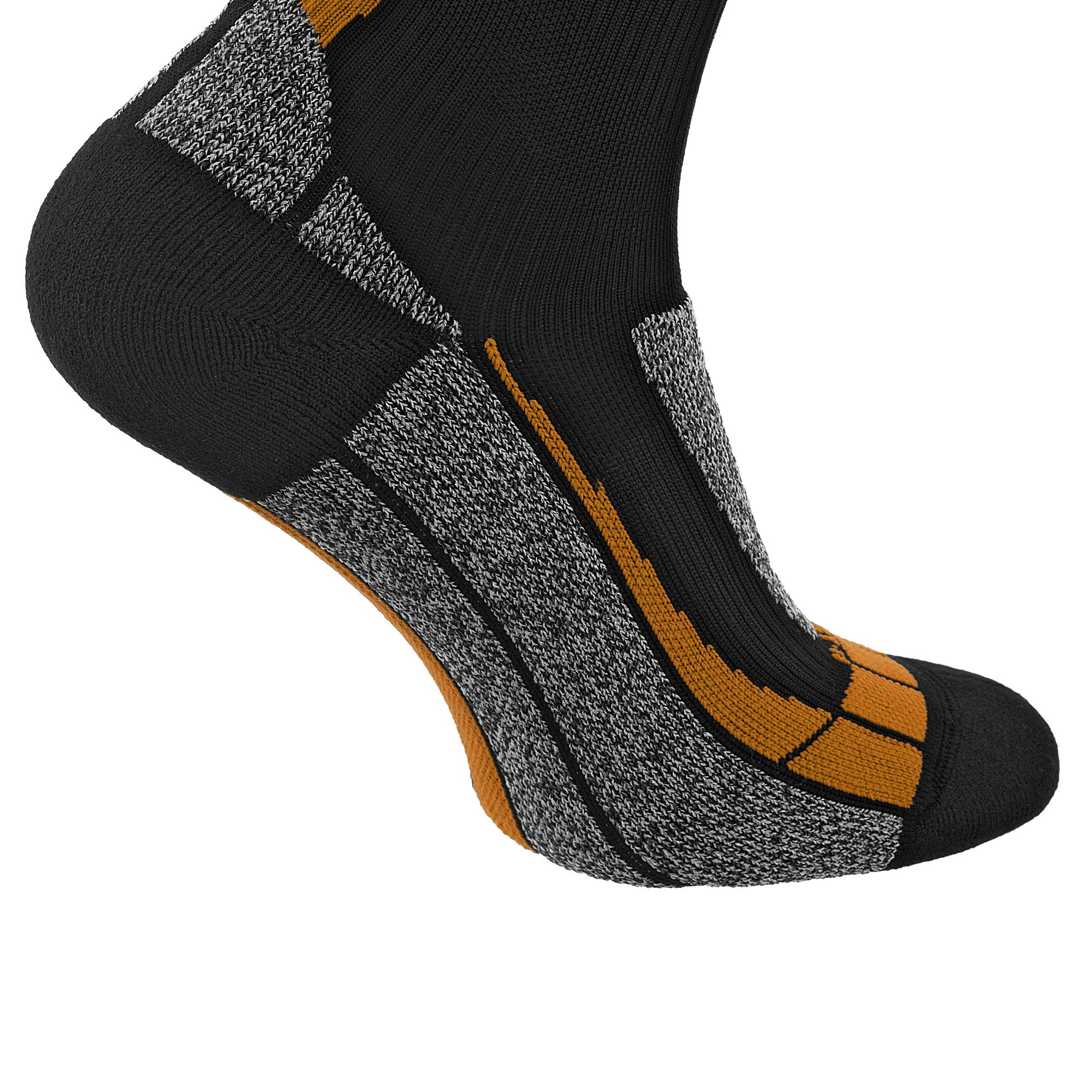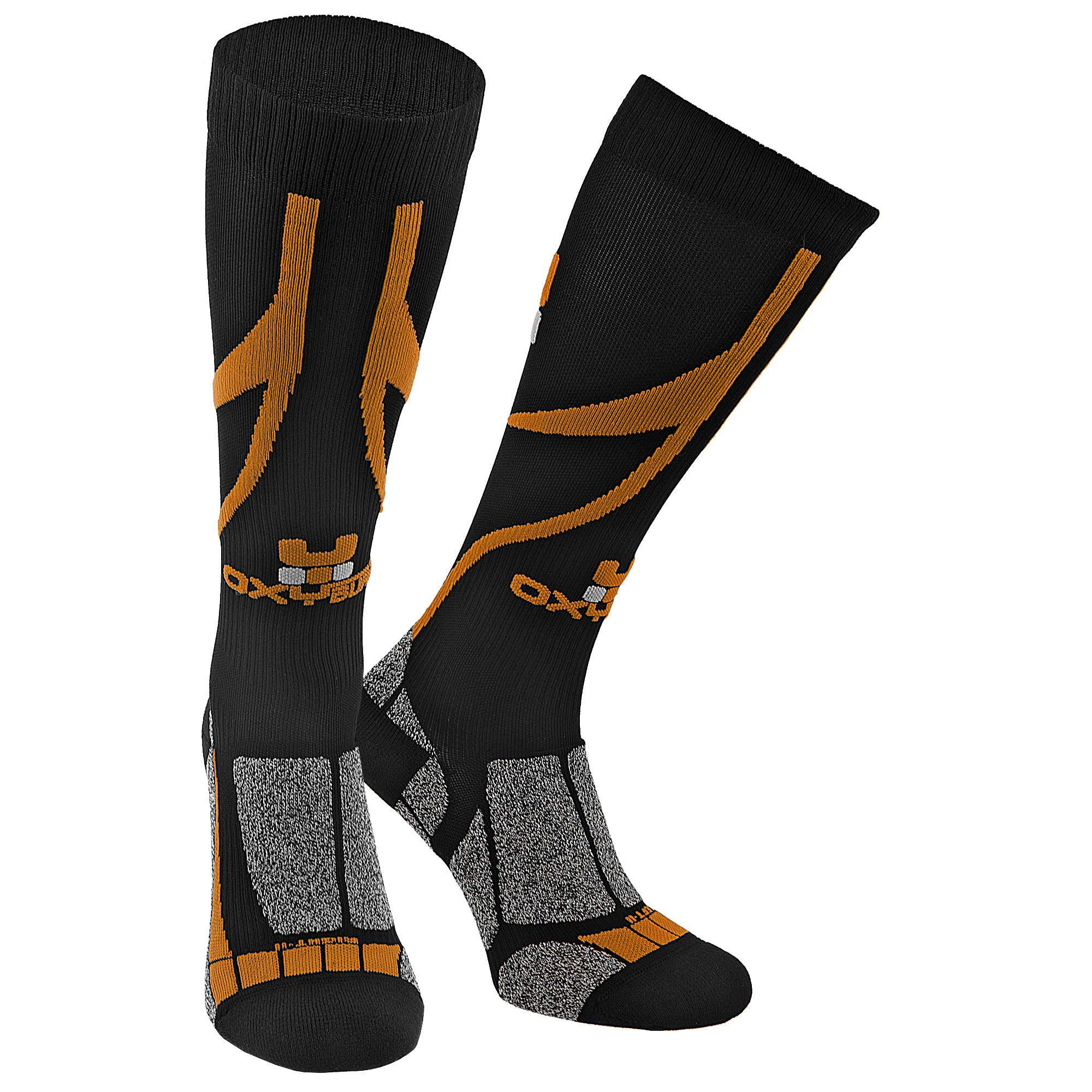 Podkolanówki na rower Oxyburn BIKE MTB to zaawansowany technologicznie produkt, wykonany z materiałów najwyższej jakości. Posiadają techniczną strukturę, zgodną z anatomiczną budową nóg, która zapewnia idealne dopasowanie oraz jeszcze lepsze wsparcie. Anatomiczne poduszki ochronne podeszwy stopy, które odpowiadają za ochronę przed otarciami i tłumienie wstrząsów, a gęsta, wyjątkowo zwarta konstrukcja z tyłu, nad piętą odpowiada za ochronę ścięgna Achillesa. Elastyczna tkanina w skarpetach kompresyjnych MTB Oxyburn tworzy "egzoszkielet" do podtrzymywania masy mięśniowej oraz do polepszenia właściwości oddychających. Dodatkowo wstawki z oddychającej siateczki zapewniają idealny mikroklimat, przez odprowadzenie nadmiaru wilgoci i ciepłą na zewnątrz. Właściwości antybakteryjne zapewniają natomiast wysoki poziom higieny, nawet przy bardzo intensywnym treningu.